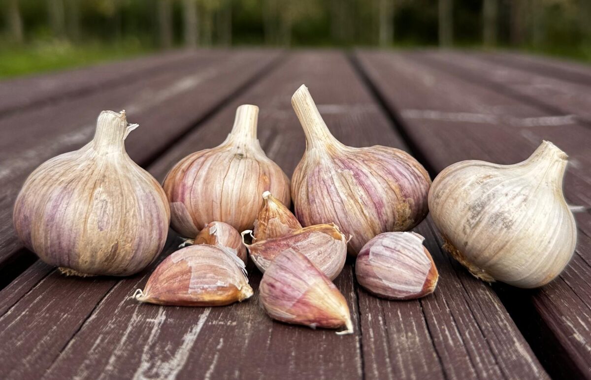 Allium sativum var. ophioscorodon (hardneck).